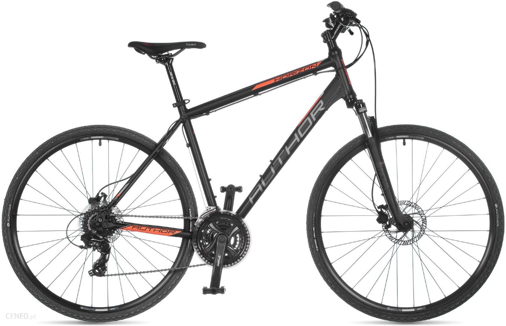 Rower crossowy na kołach 28″ oparty o napęd Shimano 3×8 i amortyzator RST Nova z blokadą skoku.SPECYFIKACJARAMA:aluminium 6061 700cWIDELEC:RST Nova ML (60 mm) blokada skokuSTERY:PRESTINE Integrated 1-1/8″KORBA:PROWHEEL, 48-38-28 (170/ 175 mm)OŚ SUPPORTU:VP COMP monoblokPRZERZUTKA PRZEDNIA:SHIMANO TY710 (31,8 mm)PRZERZUTKA TYLNA:SHIMANO TX800MANETKI:SHIMANO Acera (24)KASETA:SHIMANO HG200-8, 12-32 (8)ŁAŃCUCH:KMC Z8.3PIASTY:QUANDO 32 otworyHAMULCE:TEKTRO tarczowe hydrauliczne 6″DŹWIGNIE HAMULCÓW:TEKTRO aluminioweOBRĘCZE:AUTHOR Xenon 29, 32 otworySZPRYCHY:stalowe czarneOPONY:AUTHOR Cross 700 × 38cPEDAŁY:AUTHOR antypoślizgowe tworzywoKIEROWNICA:stalowa 20 mm 680mmCHWYTY KIEROWNICY:AUTHOR ErgoGripWSPORNIK KIEROWNICY:ZOOM aluminiowyWSPORNIK SIODEŁKA:ZOOM aluminiowy (27,2 mm)OBEJMA PODSIODŁOWA:AUTHOR (31,8 mm)SIODEŁKO:AUTHOR SphereWAGA:14,3 kg/ 20″Zgarnij eBon za zakupDopasuj rozmiar ramyDobór rozmiaru ramy zależy nie tylko od wzrostu, ale także od budowy ciała i preferencji użytkownika.Poniższa tabelka przedstawia przybliżóny zakres wzrostu dla danego rozmiaru ramy. Jeżeli nie jesteś pewien jaki rozmiar roweru wybrać, skontaktuj się z nami.ROZMIAR 18″ 20″ 22″MIN. WZROST [cm] 165 175 185MAX. WZROST [cm] 178 188 200Geometria ramyPrzygotowanie rowerów Author do wysyłkiPrzed wysyłką każdy zakupiony rower Author zostaje w naszym serwisie sprawdzony i przygotowany do jazdy.Do wysyłki rowery są demontowane w stopniu koniecznym do ich spakowania (przednie koło jest wyjęte z widelca, z korb wykręcone są pedały (o ile są w zestawie), kierownica zostaje przekręcona; czasami konieczne jest odkręcenie kierownicy od mostka). Odbiorca dokonuje ponownego montażu tych elementów na własny koszt i ryzyko.Aby zachować gwarancję na rower należy:zarejestrować zakup na stronie dystrybutora,wykonać przegląd zerowy między 6 a 8 tygodniem od zakupu w serwisie rowerowym współpracującym z dystrybutorem Velo.Lista sklepów i serwisów, w których można wykonać przegląd, zamieszczona jest pod adresem: https://velo.pl/sklepy.W naszym sklepie w Bielsku-Białej przeglądy rowerów zakupionych u nas wykonujemy bezpłatnie.Pełna treść warunków gwarancji dostępna jest poniżej.