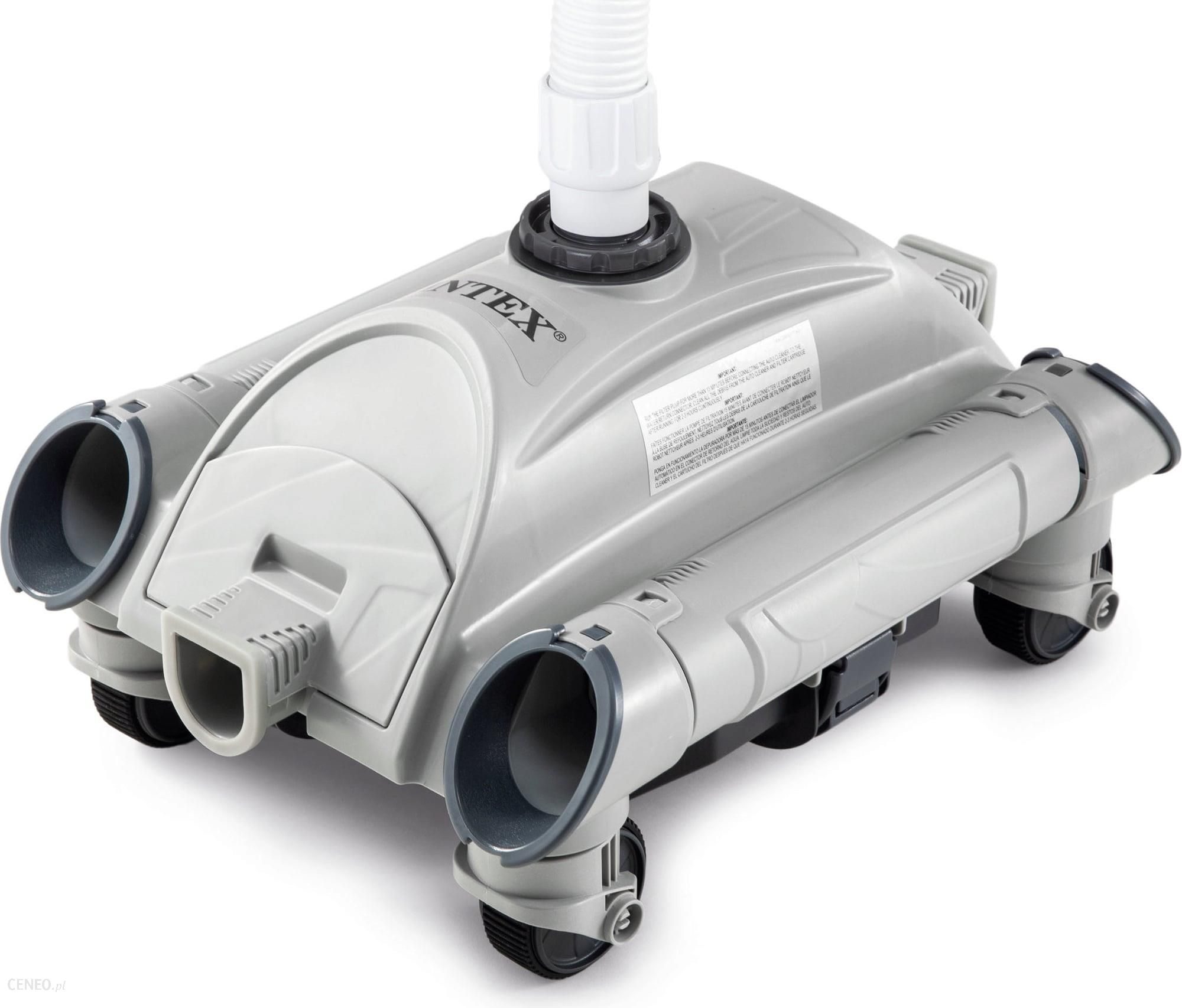 Wyczyść podłogę basenu przy niewielkim wysiłku Automatyczne czyszczenie basenu Auto Pool Cleaner dokładnie czyści podłogę basenu i masz czas na inne rzeczy. Aby uzyskać optymalne wyniki, zaleca się stosowanie pompy filtrującej o wydajności 5.678 – 13.200 litrów / godzinę. Odkurzacz działa na zasadzie Venturiego, dlatego wąż basenowy o długości 650 cm jest podłączony do dyszy wlotowej (strona ciśnieniowa). Czyści basen bez wysiłku Działa na zasadzie Venturiego Łącznie z wężem basenowym l = 650 cm Łatwy w użyciu Uwaga: Wyłącznie do basenów INTEX z przyłączem 38 mm i zasuwą.