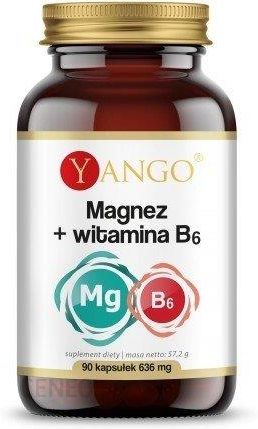 Nazwa produktu:Yango, Magnez + Witamina B6, 90 kapsułekRodzaj produktu:suplement dietyOpis produktu:Magnez to minerał występujący w ziemi, morzu, roślinach, zwierzętach i ludziach. Jest on ważną częścią ponad 300 reakcji biochemicznych w organizmie i właściwie każda komórka naszego ciała potrzebuje go do prawidłowego funkcjonowania.Niezbędne wsparcie dla ciałaMagnez odgrywa ważną rolę w wysiłku fizycznym. Podczas ćwiczeń lub obciążającej ciało pracy możesz potrzebować go nawet 10–20% więcej niż w stanie spoczynku. Jest to spowodowane funkcją, jaką pełni on w transporcie cukru we krwi do mięśni. Magnez pozbywa się też kwasu mlekowego, który gromadząc się w mięśniach podczas ćwiczeń, może powodować ich zmęczenie. Zdrowy układ nerwowyMagnez jest niezbędny dla prawidłowego funkcjonowania mózgu i układu nerwowego. Niedobór magnezu może objawiać się między innymi drażliwością, niepokojem, brakiem koncentracji i ospałością. Oddziałuje on również z receptorami ważnych neuroprzekaźników, takich jak GABA – odpowiadający za spokój i relaks. Witamina B6 Ponieważ stopień wchłaniania magnezu z przewodu pokarmowego jest ograniczony, warto wspomóc je przez zróżnicowaną dietę oraz dodatkową suplementację. Jedną z substancji ułatwiających wchłanianie tego cennego minerału jest witamina B6, która ułatwia także transport magnezu do komórek. Witamina B6 wzmacnia też układ nerwowy i usprawnia metabolizm energetyczny.Regularna suplementacja magnezem + B6: wspomaga prawidłowe funkcjonowanie mięśni, normalizuje pracę układu nerwowego, wzmacnia kości, reguluje gospodarkę elektrolitową i metabolizm energetyczny, skutecznie zmniejsza uczucie zmęczenia.Wykaz składników:Składniki: Cytrynian magnezu (magnez), pirodyksyna HCL (witamina B6) Składniki kapsułki: Celuloza roślinna (wegetariańskie)Ilości składników:Składnik aktywny 1 kapsułka 2 kapsułki 3 kapsułki- Cytrynian magnezu 540 mg 1080 mg 1620 mg- w tym magnez 81 mg (21,6%*) 162 mg (43,2%*) 243 mg (64,8%*)- Witamina B6 6 mg (428,6%*) 12 mg (857,1%*) 18 mg (1285,75%*)*RWS – referencyjna wartość spożyciaIlość netto:48,6 gSugerowane dawkowanie:1 kapsułka 2-3 razy dziennie.Nie należy przekraczać zalecanej dawki produktu do spożycia w ciągu dnia.Instrukcja użycia:Kapsułkę połknąć i popić dużą ilością wody, po posiłku.Przeciwwskazania:Niewskazane dzieciom, kobietom w ciąży oraz karmiącym.Warunki przechowywania:Przechowywać w suchym miejscu w temperaturze poniżej 25 °C w sposób niedostępny dla małych dzieci. Chronić przed światłem.Nazwa firmy produkującej środek/Adres podmiotu:YANGO Sp. z o.o. ul. Granitowa 3/14, 02-681 Warszawa.Kraj lub miejsce pochodzenia:Wyprodukowano w Unii Europejskiej.Suplement diety (środek spożywczy) nie może być stosowany jako substytut zróżnicowanej diety.Celem suplementu diety jest uzupełnienie normalnej diety.Dodatkowe informacje o produkcie znajdują się w ulotce załączonej do produktu bądź na jego opakowaniu.
